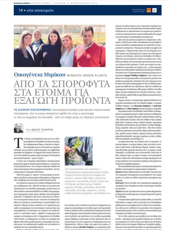 Πριν 30 χρόνια ο Μιχάλης Μιμίκος δημιούργησε το πρώτο γυάλινο θερμοκήπιο στα Ψαχνά Ευβοίας (80 χλμ. βόρεια των Αθηνών) και ξεκίνησε ειδικευόμενος στην παραγωγή σπορόφυτων τομάτας.